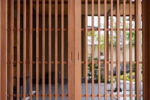 木製格子戸:昔ながらの温もりがあり、自然素材の良さを感じられる。