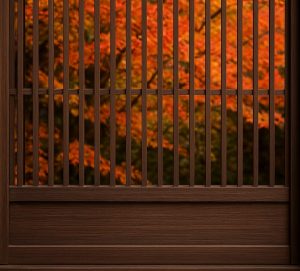 秋は一年の中でも特に光が美しく感じられる季節。やわらかな陽射しが差し込み、空気も澄んでいるため、格子戸を通して映る光と影のコントラストが際立ちます。紅葉の鮮やかな赤や黄色が格子越しに差し込む様子は、まるで屏風絵や襖絵のよう。日常の一コマでありながら、四季を感じる芸術作品に出会える瞬間です。