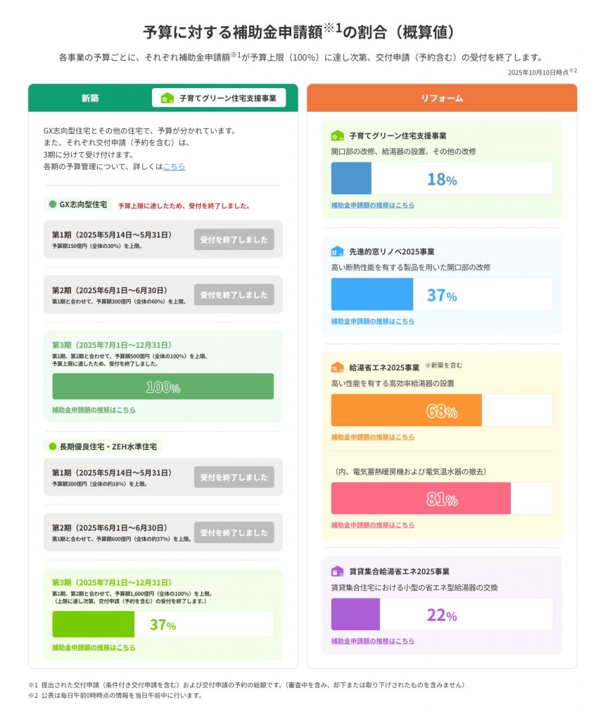 子育てグリーン住宅支援事業★補助金申請額状況!10月10日時点