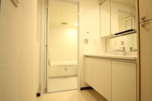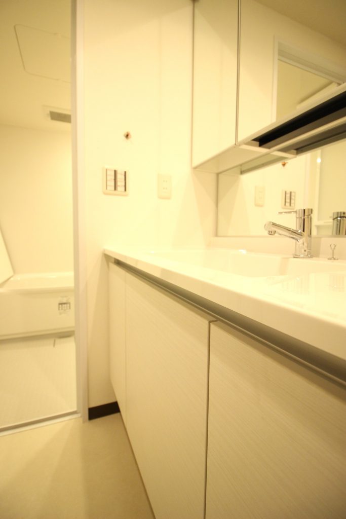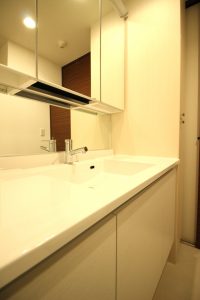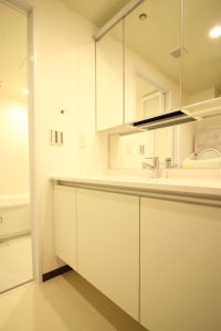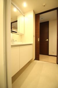 上質素材と清潔感のあるカラーでホテルのような洗面空間